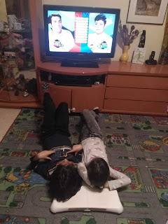 Viendo la tele con la cabeza apoyada en la tabla de la wii 😊.